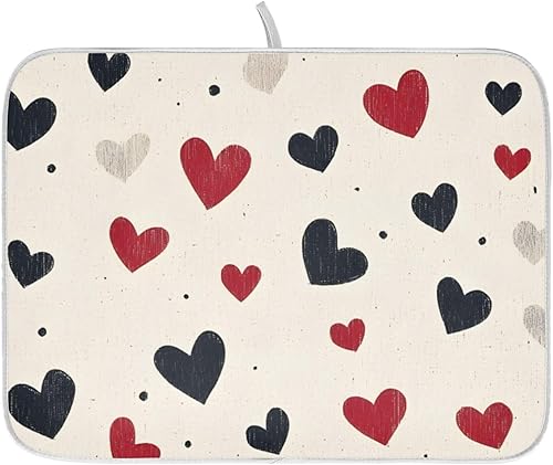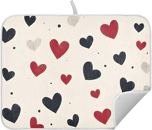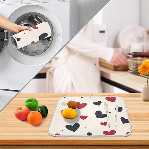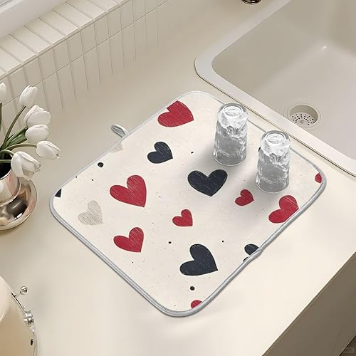 OWFKAY Tapis de séchage pour comptoir de cuisine, Saint-Valentin (38), 40 x 45 cm, séchage rapide, tapis d'égouttoir, tapis auto-séchant