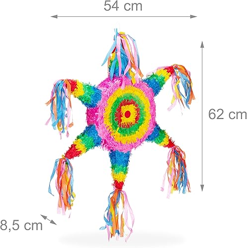 Relaxdays- Pinata à Suspendre Étoile Arc-en-Ciel pour Enfants à remplir Anniversaire Jeux décoration, coloré, 10025181