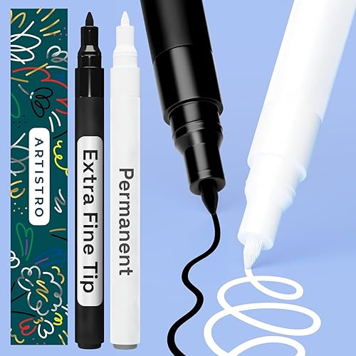 Artistro marqueurs permanents noir et blanc 2 pièces – marqueurs étanches pour pneu, tissu, pierre, verre, céramique, bois, papier – stylos peinture à base d’huile – pointe extra-fine 0,7 mm