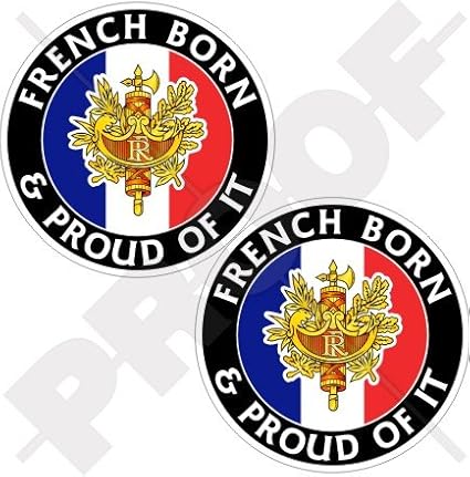 France Français Né et Fière Française, 75mm Vinyle Autocollants, x2 Stickers
