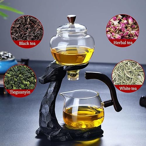 YUDIZWS Magnetique Théière en Verre avec infuseur, Semi Automatique Cerf Kungfu Drip Theiere pour service a thé,Deer tea maker