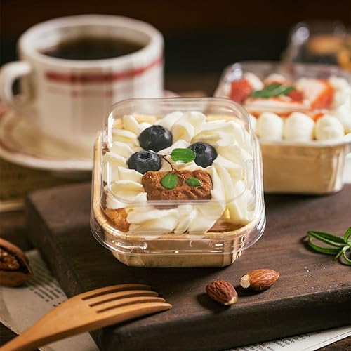 Smaoqingji Boite Tiramisu Jetable Avec Couvercle - Paquet de 25 Pièces, de Couleur Jaune, Empêche les Aliments D'être Ecrasés et Présente Clairement Aliments Savoureux Etanche et Résistant à L'huile