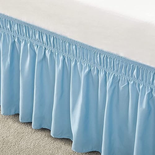 Surwin Cache-Sommiers Jupe de lit à Volants Jupe de Lit Élastique Dentelle Robuste et élastique Microfibre Style Enveloppant Facile a Mettre et à Enlever, Jupe de lit (Bleu Marine,100x200x38cm)