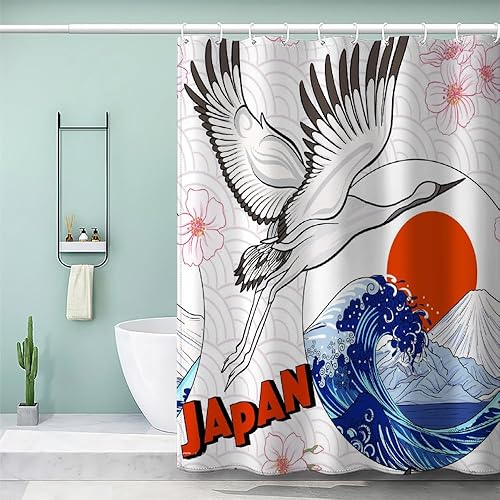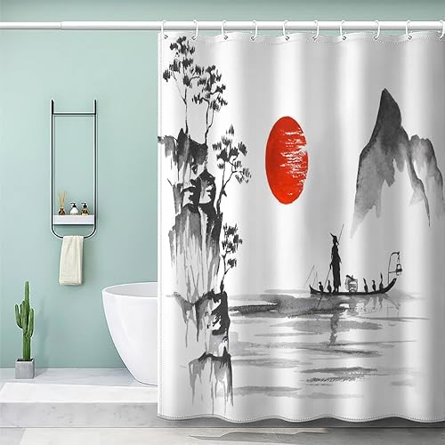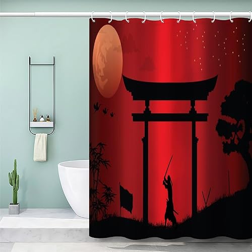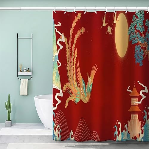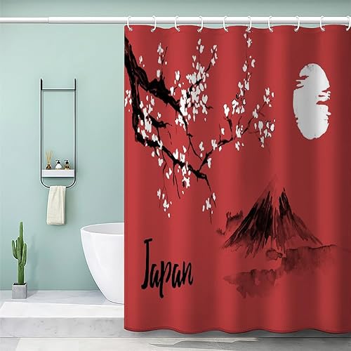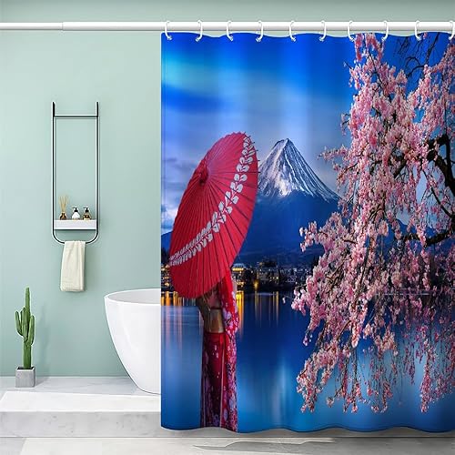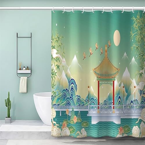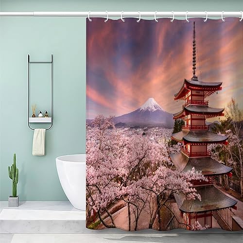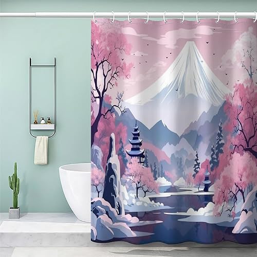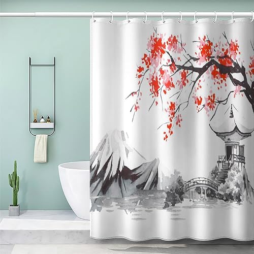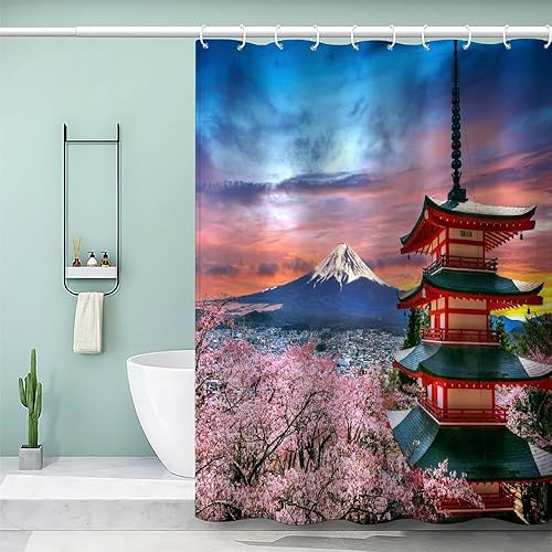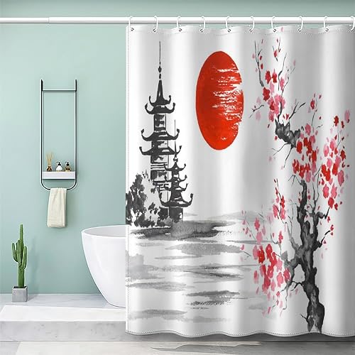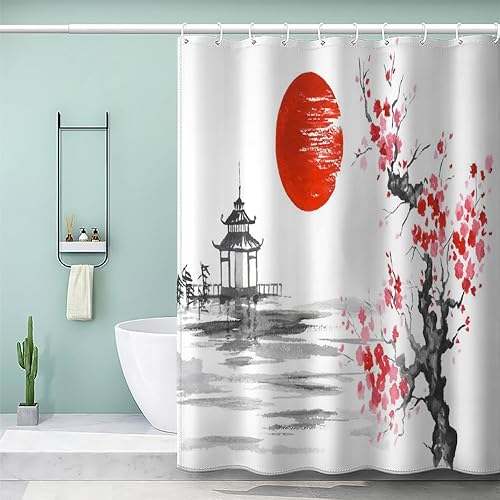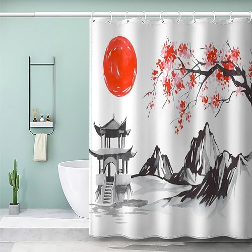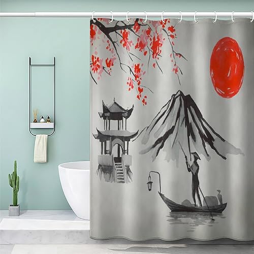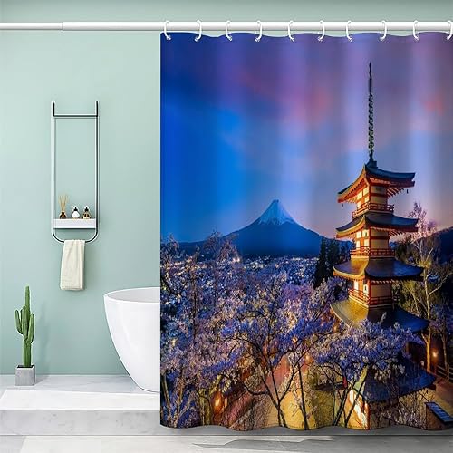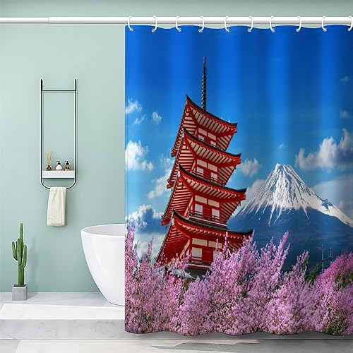 MEVASA Rideau de Douche Anti Moisissure Style Japonais 180x180 Imprime en 3D Art Deco Architecture Japonaise Salle de Bains Opaque Polyester