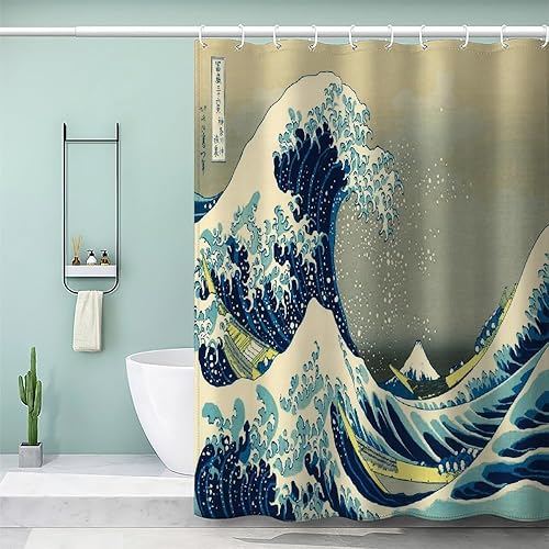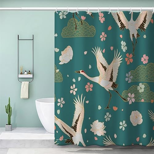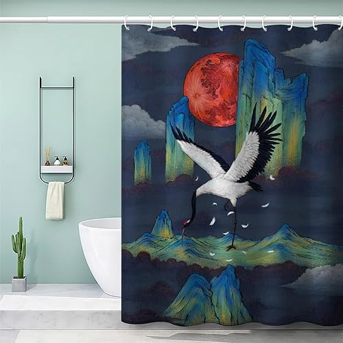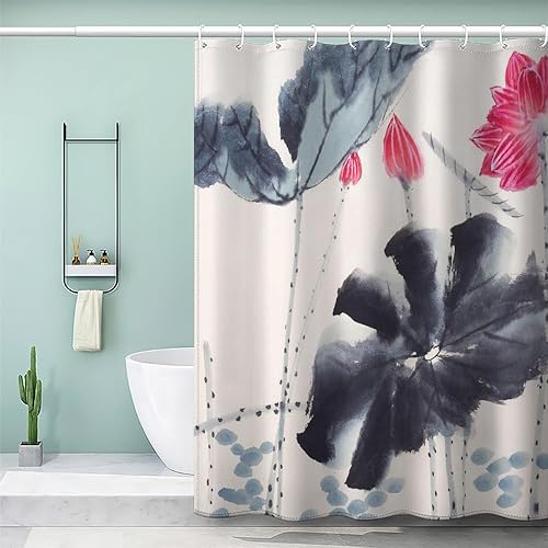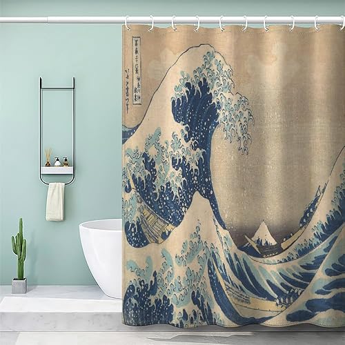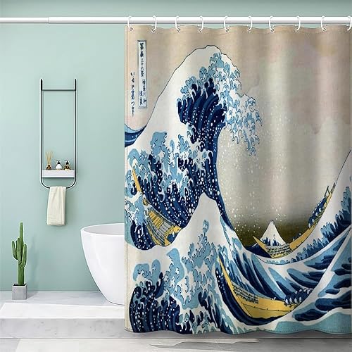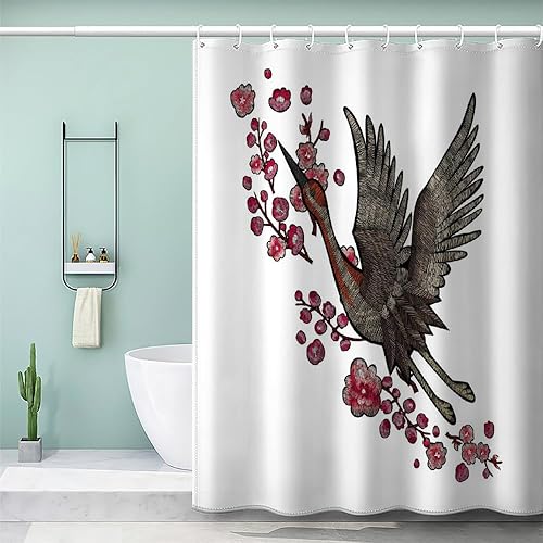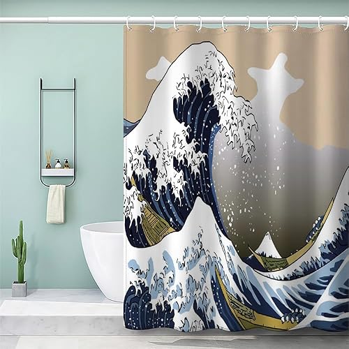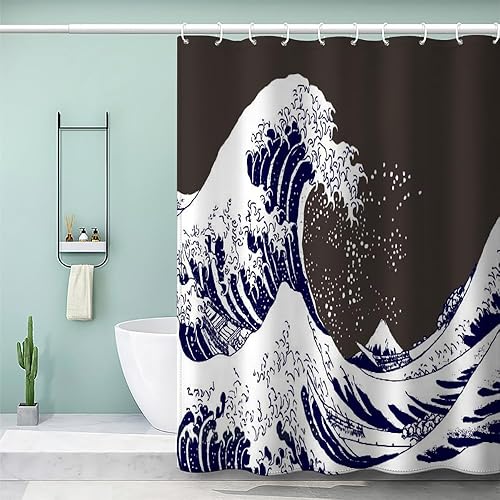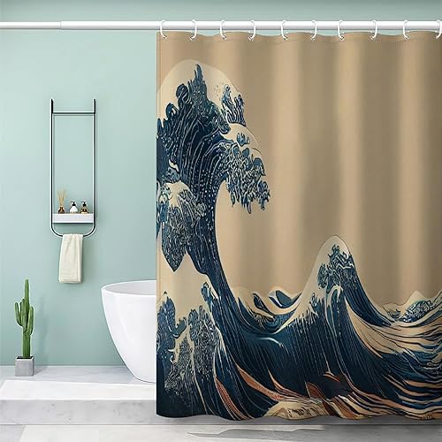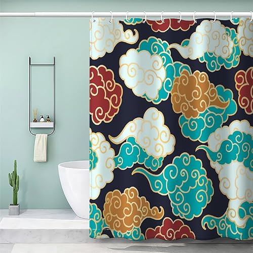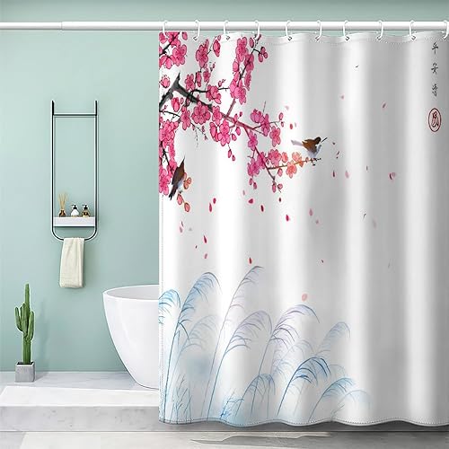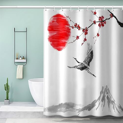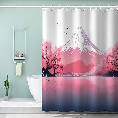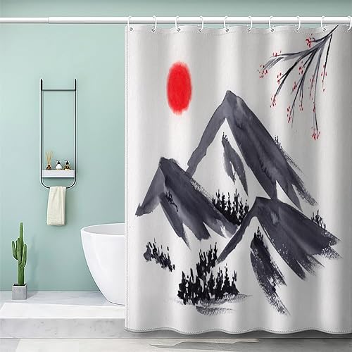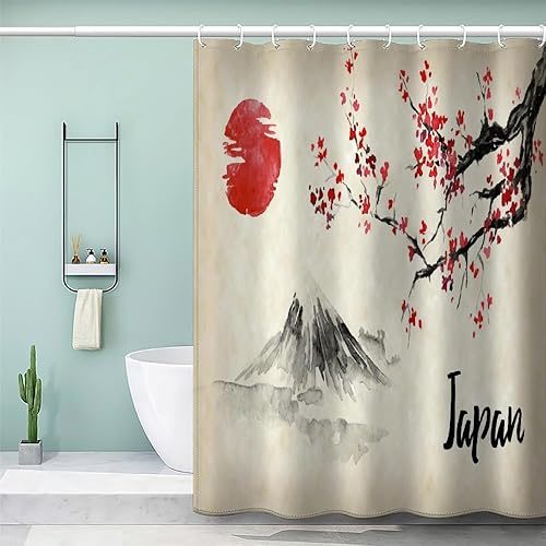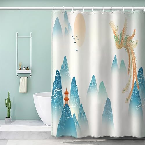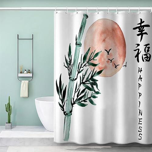 MEVASA Rideau de Douche Anti Moisissure Style Japonais 180x180 Imprime en 3D Art Deco Architecture Japonaise Salle de Bains Opaque Polyester
