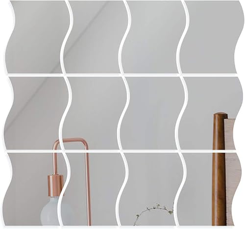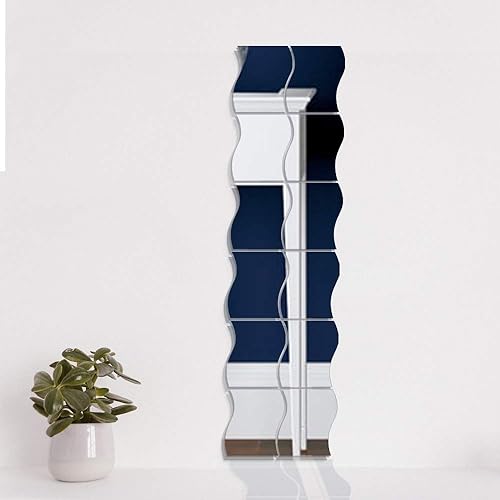 VINFUTUR 12pcs Miroir Autocollant Mural Argenté Miroir Murale adhesif Forme en Vagues DIY Decal Miroir de Style pour Décoration Bureau Maison Chambre - 12 * 9.5cm