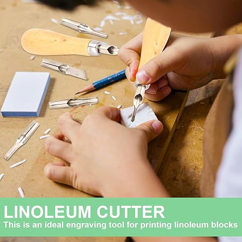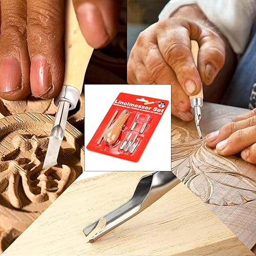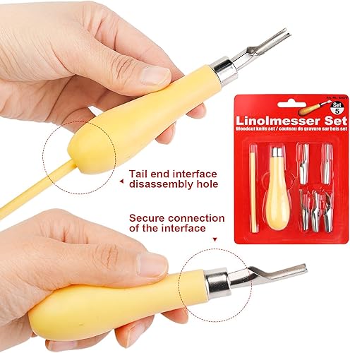 ARJDXDP 2 Sets Outil de Sculpture,Coupe-linoléum, DIY Outils de Sculpture, Outils De Coupe De Linoléum 5 En 1 avec Couteau à Découper Cuillère, Kit D'Outils de Gravure sur Bois pour Tampons
