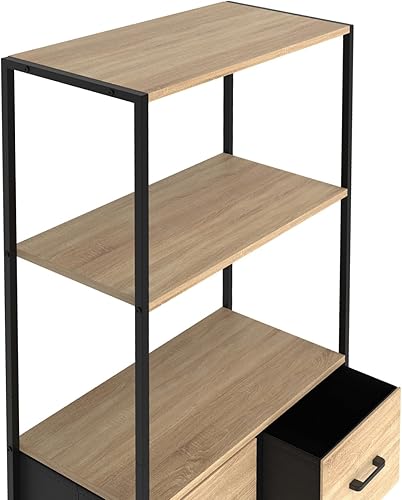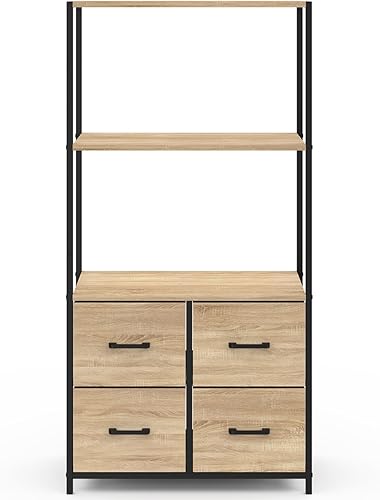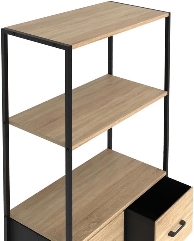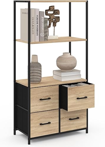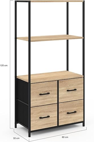 IDMarket - Etagère 3 Niveaux avec 4 tiroirs en Tissu Utah 120 cm Meuble de Rangement Design Industriel