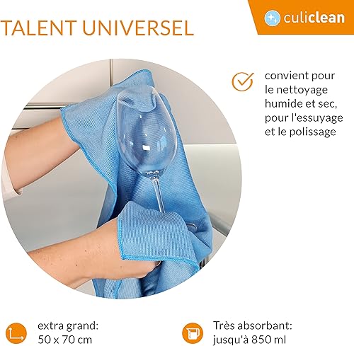 culiclean torchons vaisselles en Microfibre, 10 pièces (50x70cm, Bleu)
