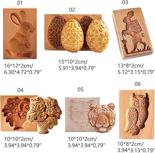 Tampons à biscuits - Moules à biscuits - Outil de cuisine - Fournitures de cuisson en bois de qualité alimentaire - 6 styles pour la cuisine