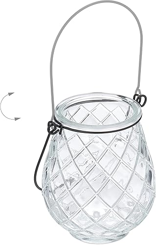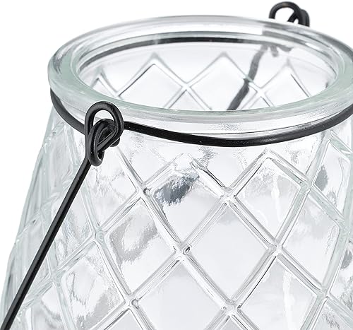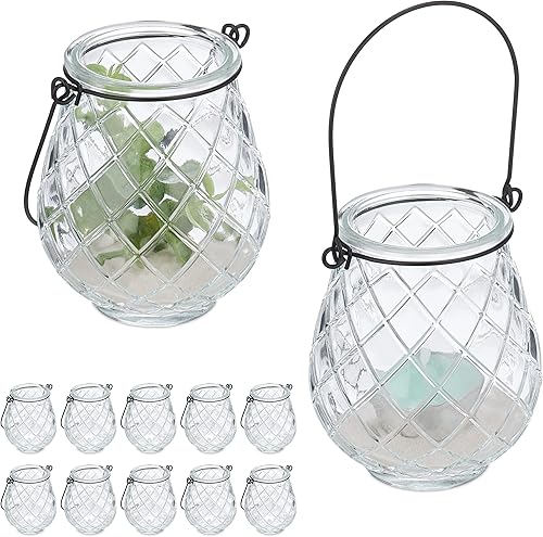 Relaxdays Photophores, Lot de 12, Verre, Anse, H x D: 10 x 8,5 cm, extérieur & intérieur, lanternes, Transparent - Noir
