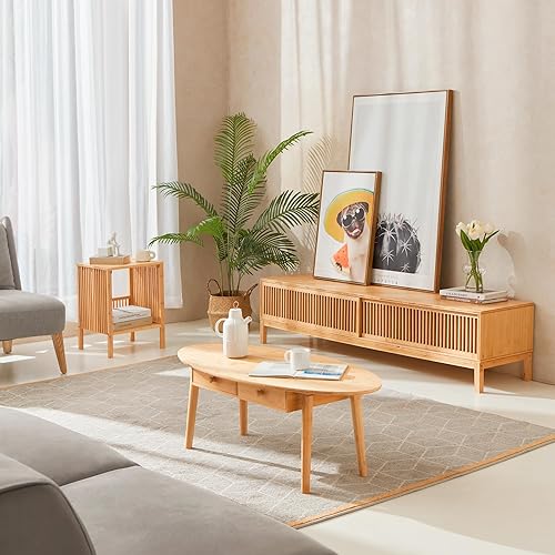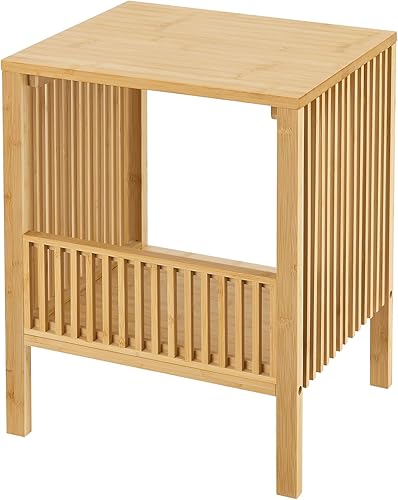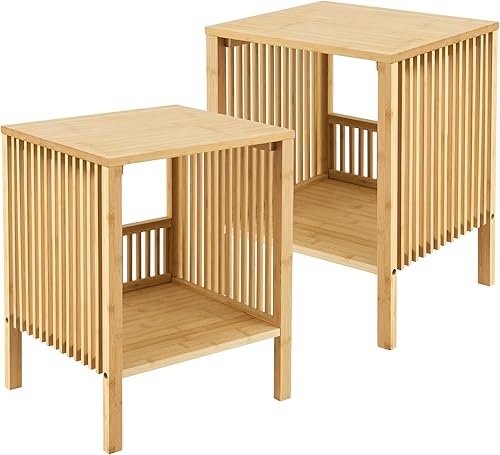 [en.casa] Lot de 2 Tables d'Appoint avec Espace de Rangement Table de Chevet Bout de Canapé Design Scandinave Table Basse pour Salon Chambre Bambou 50 x 39 x 33 cm Naturel