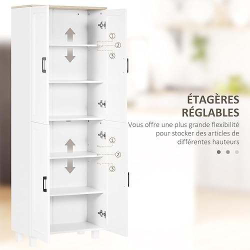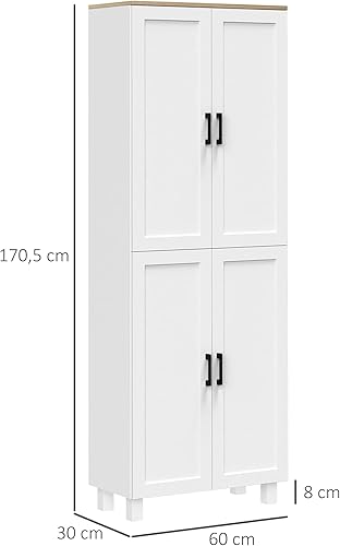 HOMCOM Armoire de Cuisine Buffet Cuisine vaisselier Meuble de Rangement Style Moderne Multi-rangements avec 4 Portes et étagères réglables, 60 x 30 x 170,5 cm, Blanc