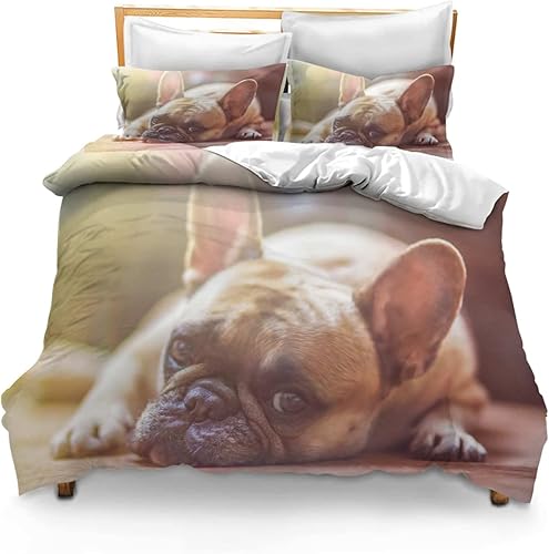 BJCJGGL Housse de Couette 200x200 Adolescent Bouledogue FrançAis Parure de Lit 2 Personnes avec Fermeture Éclair et 2 Taie d'oreiller 65x65 cm - Doux Respirant Microfibre Housse de Couette