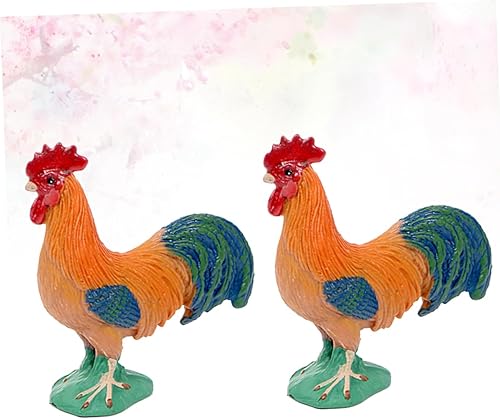TOPBATHY 2 Pièces Garnitures De Petits Gâteaux Figurine De Jardin Coq Poule Statue De Jardin Coq Figurines De Statues d'animaux Hauts De Forme De Gâteau Ferme Animal Artificiel