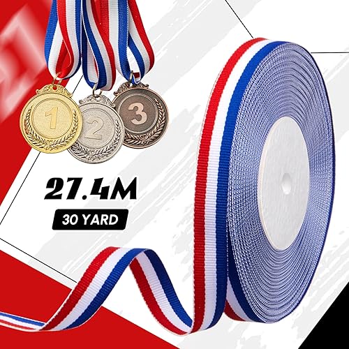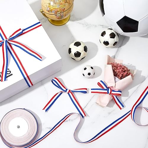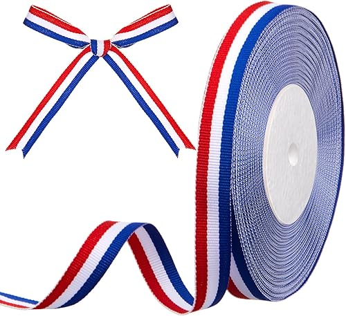 Gulfmew 15 mm x 30 yards Ruban Bleu Blanc Rouge Drapeau Français Ruban Tricolore Bobine Décorative pour l'Artisanat Décoration DIY Emballa Cadeau Médaille Mariage Fête Nationale Supercoupe d'Europe