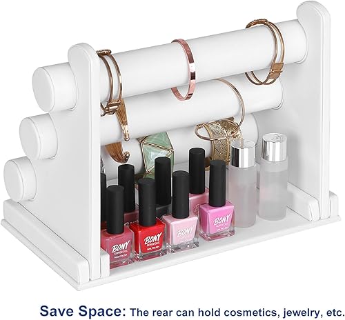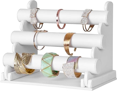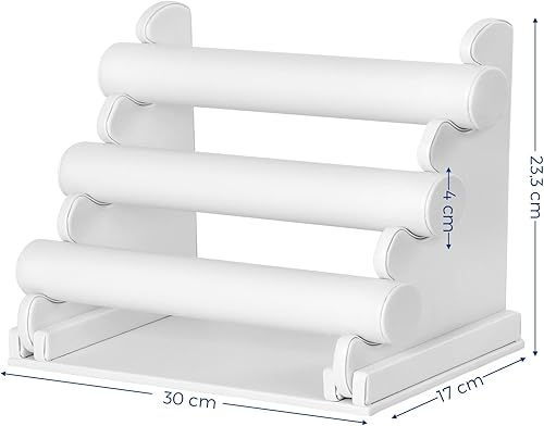 SONGMICS Présentoir, Porte-bijoux, Porte-bracelet, Support pour Montre, Rangement Accessoires, en PU, 3 Barres, pour Bracelet, Collier, Bague, Grand Capacité, Blanc JDS101