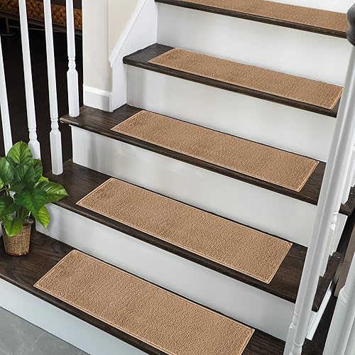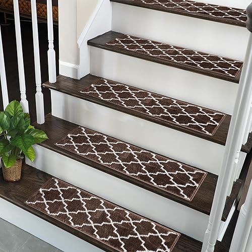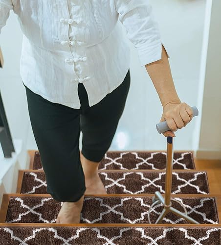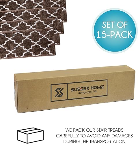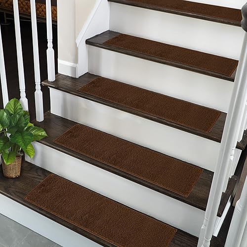 SUSSEXHOME Lot de 10 bandes de tapis d'escalier solides 100 % polypropylène pour escaliers d'intérieur, faciles à installer avec double ruban adhésif, sûrs, extra adhérents, tapis décoratifs, marron