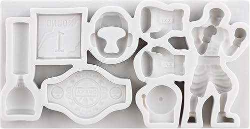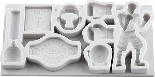 Sijiangmold Boxsport Lot de 2 moules en silicone Boxer Fondant Casque de boxe Gant Ceinture Moules pour décoration de gâteau Chocolat Cupcake Topper Bonbons Argile polymère Pâte à fleurs