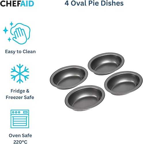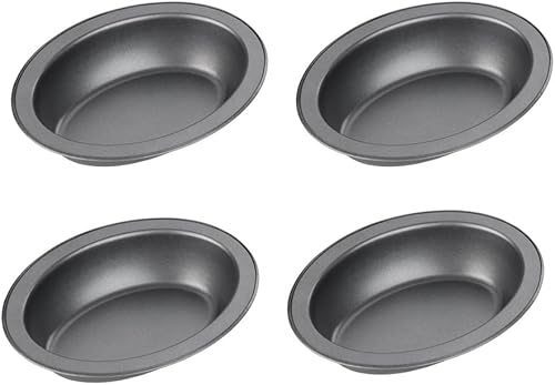 Chef Aid Lot de 4 plats à tarte ovales antiadhésifs mesurant chacun 17 cm x 13 cm x 3,7 cm, gris