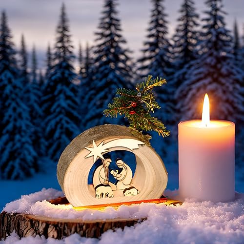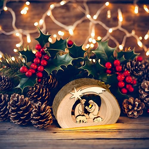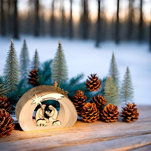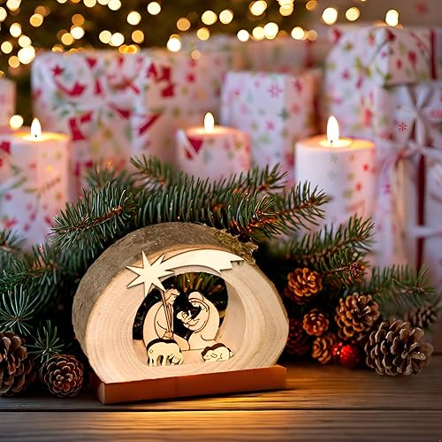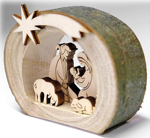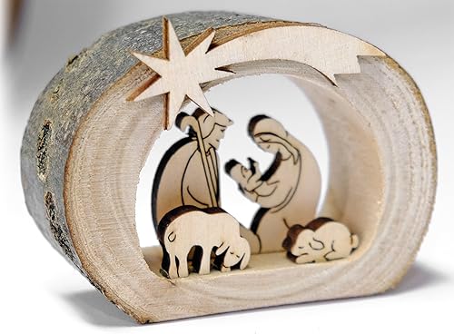 Kaltner Präsente - Crèche de Noël en bois - Avec Jésus, Marie et l’enfant dans un tronc d'arbre avec écorce - Idée cadeau