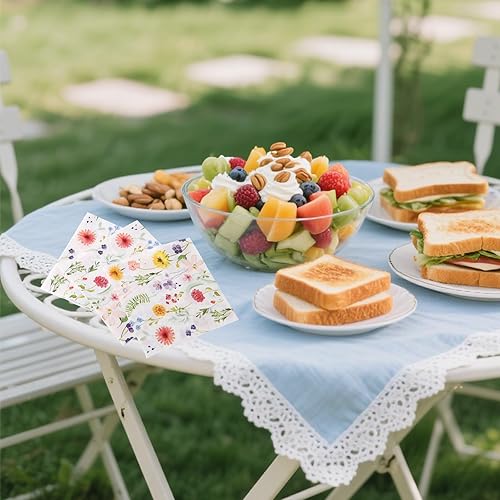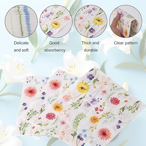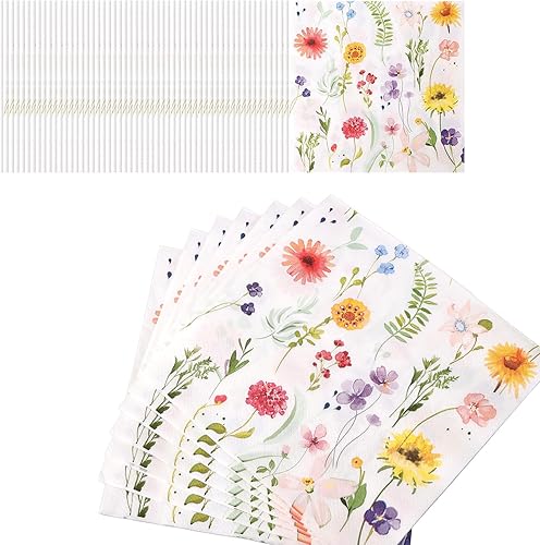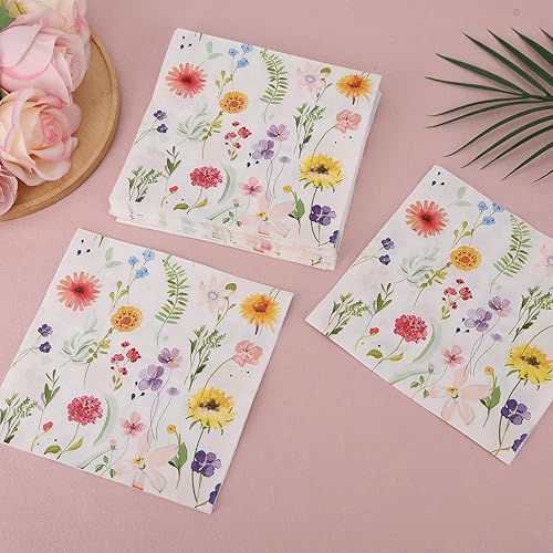 BOXOB 60pcs Serviettes à Fleurs Sauvages, Serviettes en Papier Floral pour Fêtes Printanières Baby Showers et Mariages Élégantes Décorations Florales pour Goûter et Anniversaire