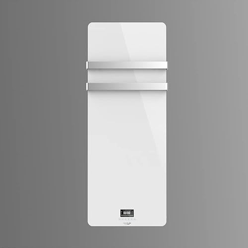 Cecotec Sèche-Serviettes électrique en Cristal Ready Warm 9870 Crystal Towel, 850 W, Deux Crochets en Acier Inoxydable, Minuterie, Télécommande, Écran LED (Blanc/Rose Acier) (Noir/Rose Acier)