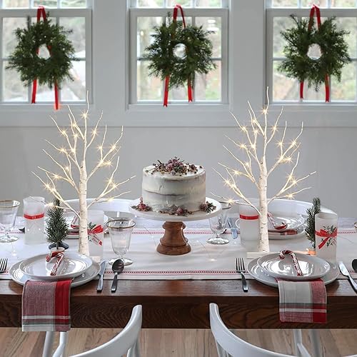Lot de 2 branches lumineuses Eambrite 24 LED blanc chaud - Sapin - Branches de bouleau - Fonctionnement à piles - Décoration de Noël pour la maison, les fêtes, les anniversaires, les mariages
