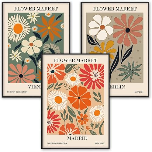 WBdesignz Lot de posters Flower Market Vienna Madrid Berlin - Tableaux muraux pour salon, chambre à coucher - Style vintage (DIN A3 sans cadre)