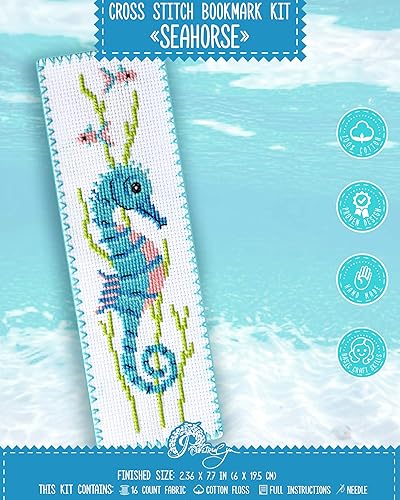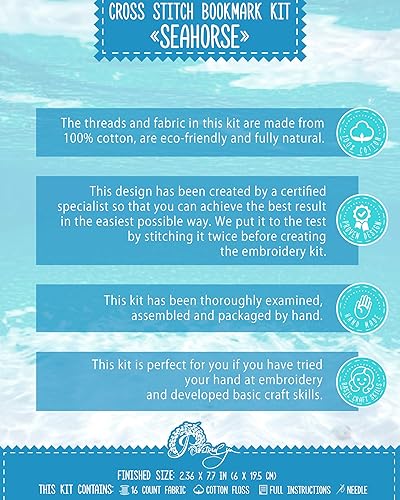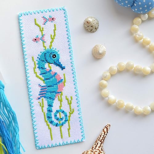 Kit de broderie au point de croix pour marque-page Motif hippocampe