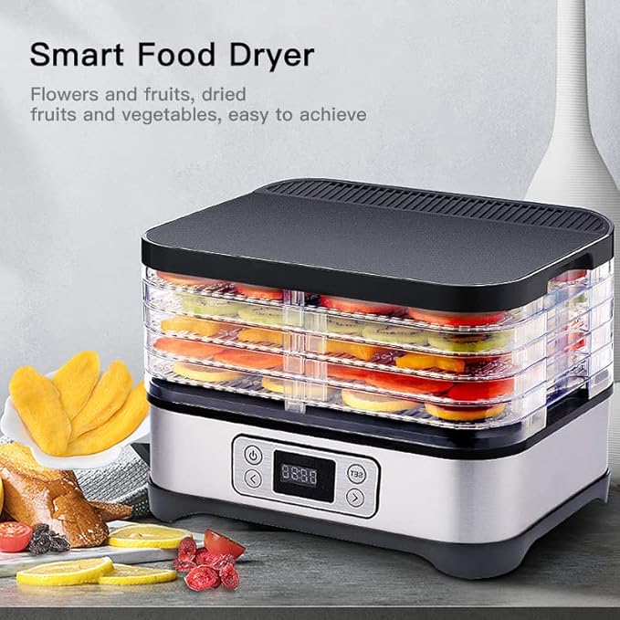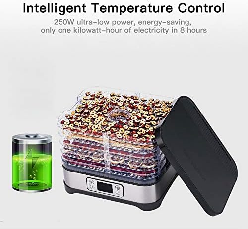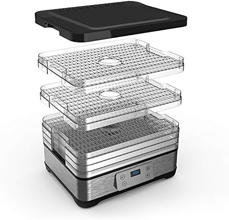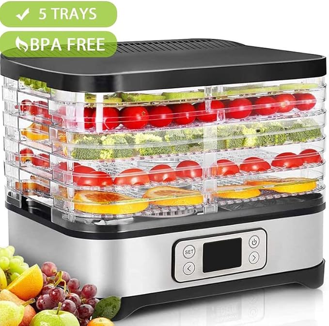 Déshydrateur alimentaire avec contrôle de température 250 W - Déshydrateur en Inox pour viande fruits légumes - Minuterie 72 h, 35° à 70° degrés - 5 plateaux - Food Dehydrator - GS - sans BPA