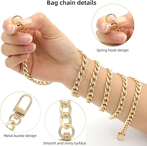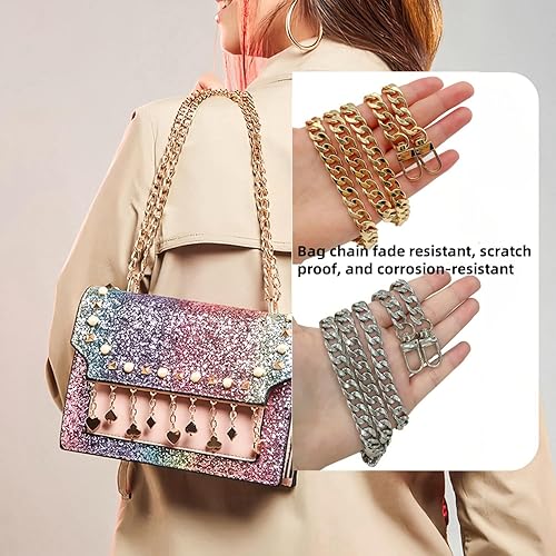 Lajiakoy® Bandouliere pour Sac, 4 PCS Sangle Sac Bandouliere, Chaîne de Remplacement pour Sac À Main, Chaine Argent, Or Femme pour Sac Bandoulière, Sac, Portefeuille (60CM, 120CM) (4 Pièces)