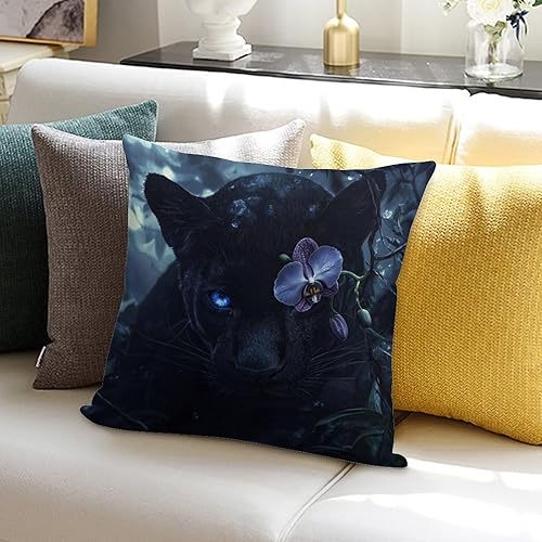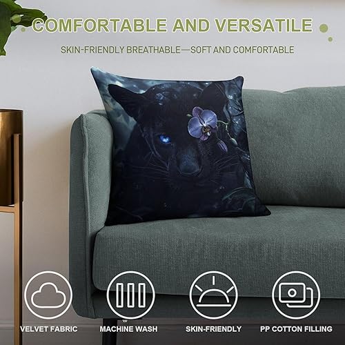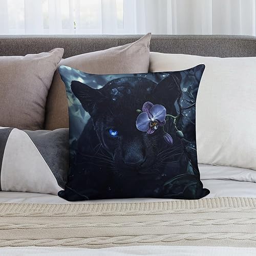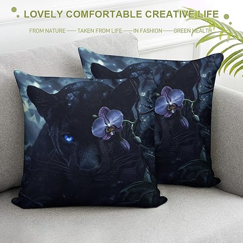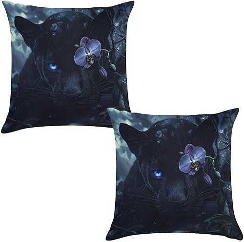 Lot de 2 Housse de Coussin Exterieur Impermeable La Panthère noire Housse Coussin Moderne Peluche courte Taie d'oreiller pour Canapé Patio Extérieur Jardin Salon canapé Décor Coussin, 45x45 cm Y-595