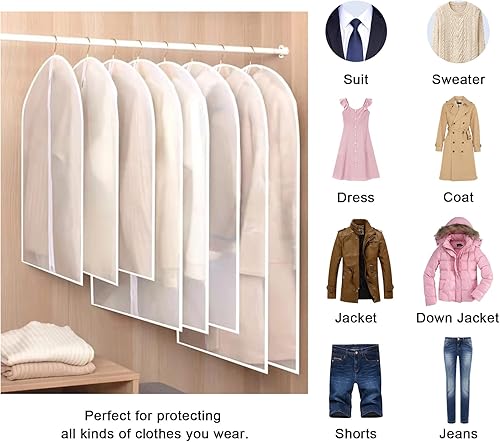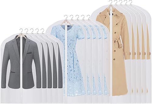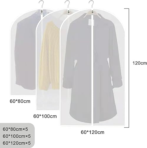 Lot de 15 Housses à Vêtements, 60 x 80/100/120 cm, Housses à Vêtements Transparentes pour Costumes, Robes, Vestes, Chemises, Robes Soirée, Robes Mariée, Manteaux, Chemises, Anti-mites, Imperméables