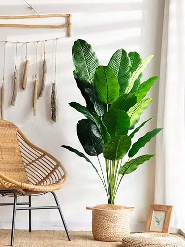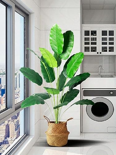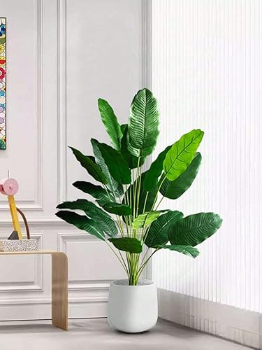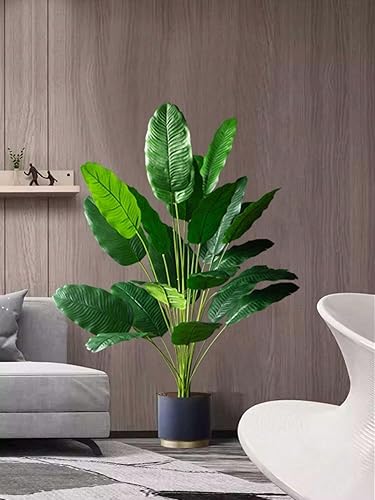 Plante de décoration artificielle de palmier arbre réaliste palmier tropical Plantes artificielles Bananier Feuilles d'oiseau de paradis Arbuste Forêt Vert Extérieur Intérieur Maison (115 cm 18