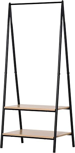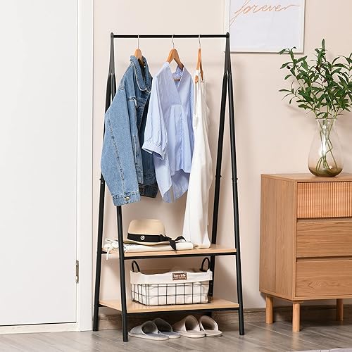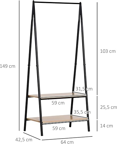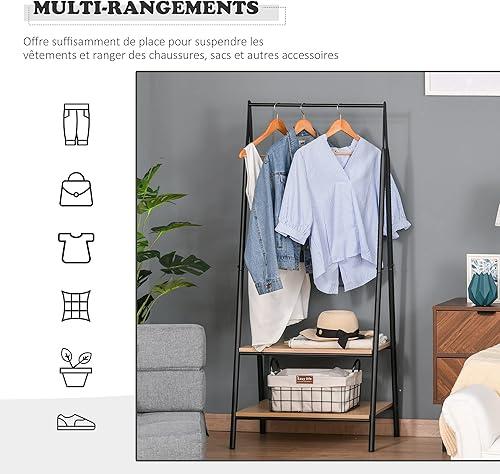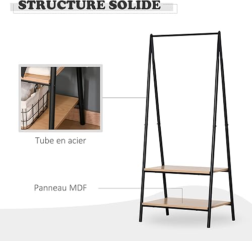HOMCOM Portant à vêtements penderie style contemporain triangulaire dim. 64L x 43l x 149H cm 2 étagères MDF bois clair acier noir