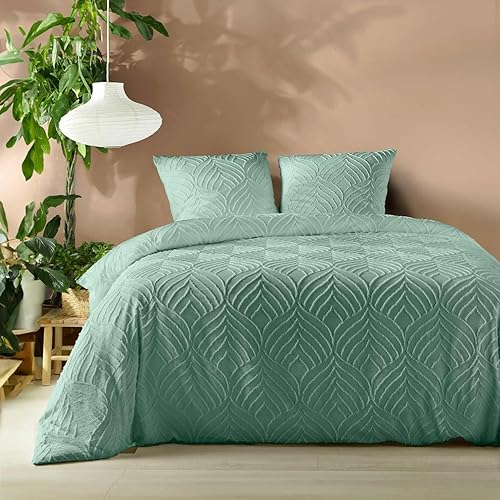 Parure de Lit Heltie 3 Pièces - Housse de Couette Microfibre Tuftée (240x220 cm ou 260x240 cm) avec Taies 63x63 cm, Certifiée Oeko-Tex, Style Moderne, Confort Toutes Saisons (Ivoire, 260 x 240 cm)
