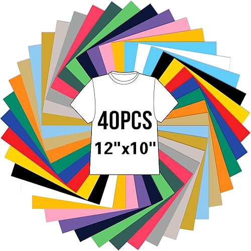Opopark 40 Feuilles Thermocollant pour Tissu Vinyle 30 x 25cm Vinyle de Transfert de Chaleur vinyle adhesif pour t-shirts, Tissu, Découpe Silhouette