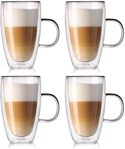 orion group Lot de 4 verres isothermes à double paroi - Verre à thé - Double paroi - Verres à thé - Verres à thé - Verres thermiques pour café, thé, macchiato - 430 ml