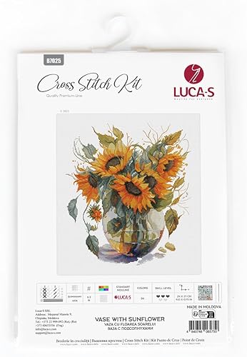 Luca-S Kit de broderie au point de croix - Vase avec tournesol - Pour adultes - B7025