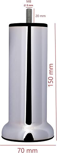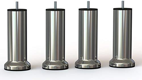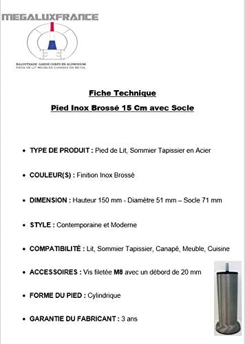MEGALUXFRANCE 4 Pieds DE LIT SOMMIER TAPISSIER en Acier Finitions INOX Brosse 15 CM avec Socle + 4 ÉCROUS A Griffes M8 A Visser
