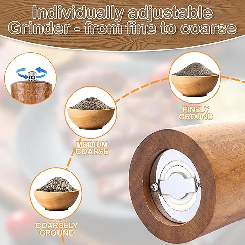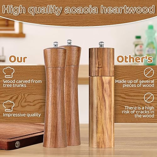 La Llareta Moulins à Sel et Poivre en Bois D'acacia, Poivrières à Grosseur Réglable, Grande Capacité, pour Sel de Mer et Poivre