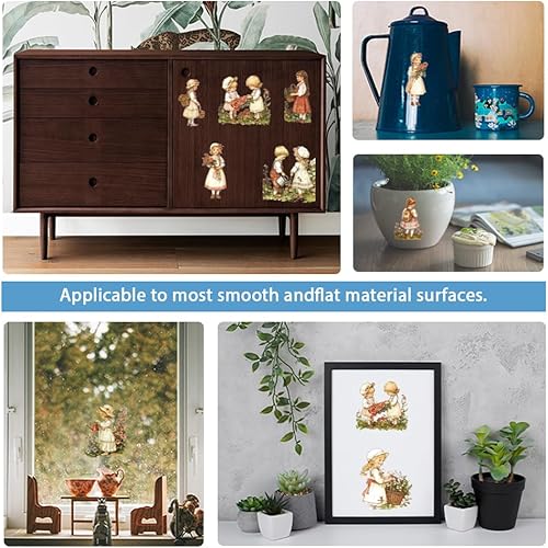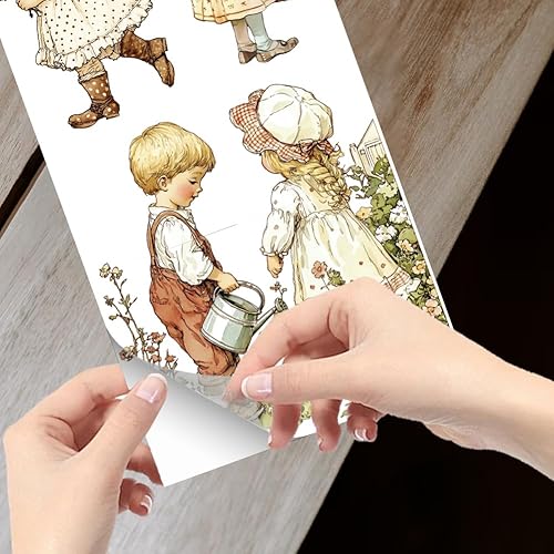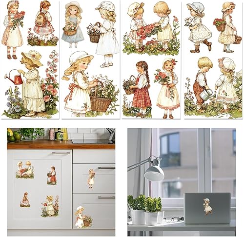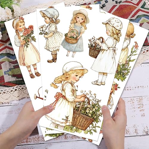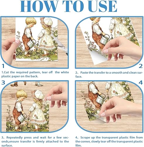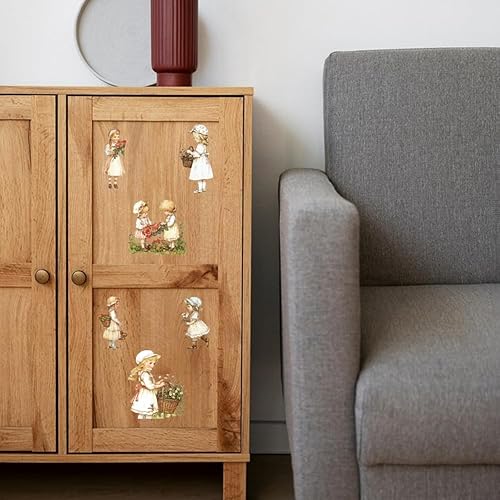 GLOBLELAND 4 Feuilles de Transfert de Meubles de Femme de Jardin Rétro 6x12 pouces Fleur Femme Frotter Sur Transfert Autocollants D'Art Mural Auto Adhésifs pour Chambre Salon Bureau Décor de Table