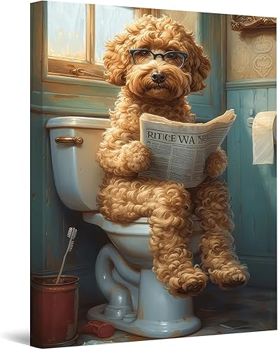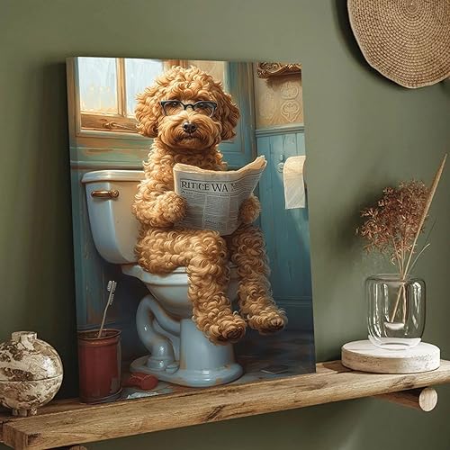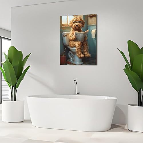 LZLHDE Tableau sur toile pour salle de bain - Décoration murale - Motif chien - Tableau mural avec cadre - Peinture murale - Décoration murale - 30 x 40 cm