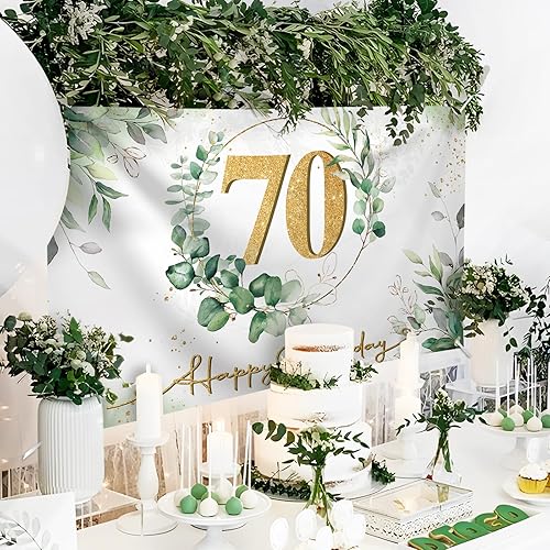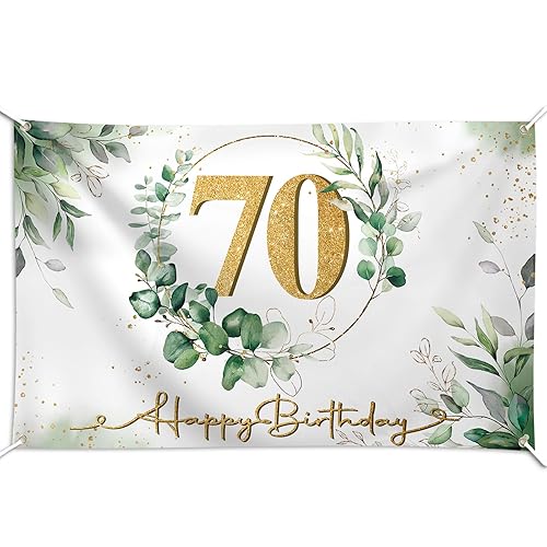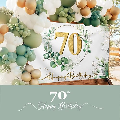 Bannière Happy Birthday 70 Ans Banderole Vert Or Anniversaire Toile de Fond Grand Tissu de Photographie pour Fête 1.1 x 1.8m