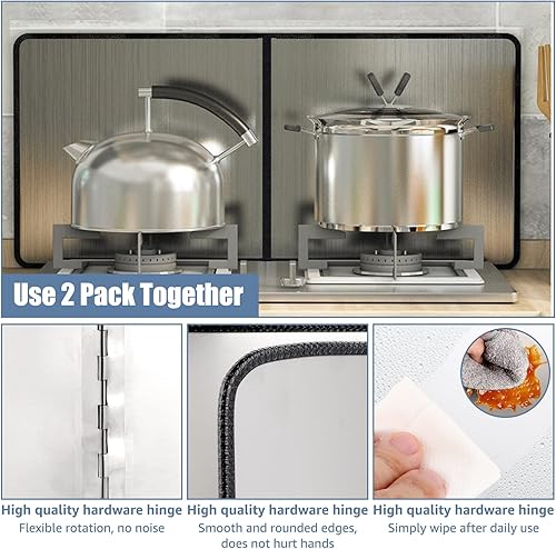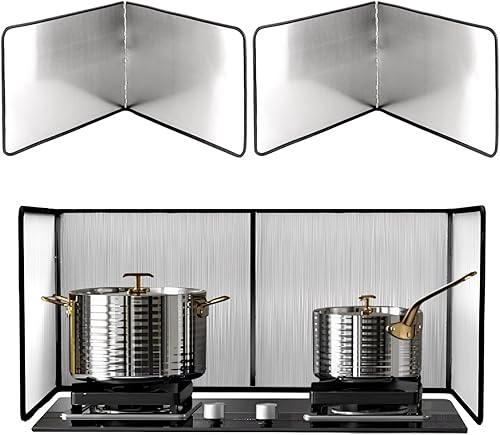 AKOLAFE Lot de 2 protections anti-éclaboussures pliables anti-éclaboussures pour cuisinière, cuisinière, cuisine avec revêtement anti-adhésif, protection anti-éclaboussures pliable pour cuisson, rôti,