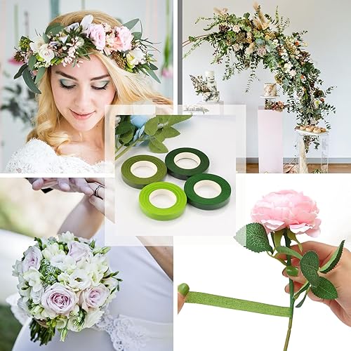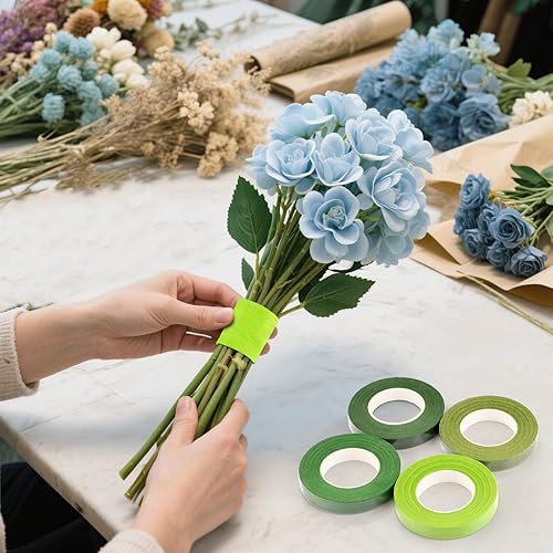 XRXYMQ Lot de 8 rubans de fleuriste - 216 m - 4 couleurs vertes - Ruban floral de 12 mm - Autocollant - Pour bouquet de fleurs - Pour bouquet de fleurs, tige et bricolage (27 m / ruban)