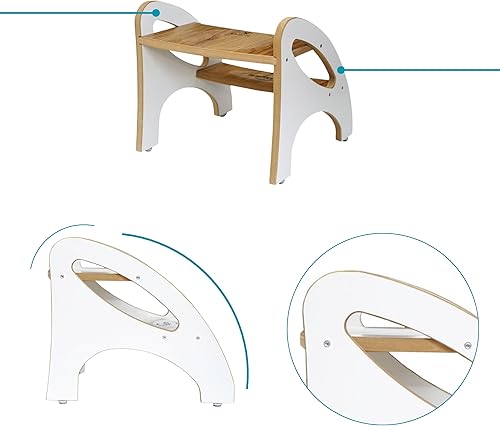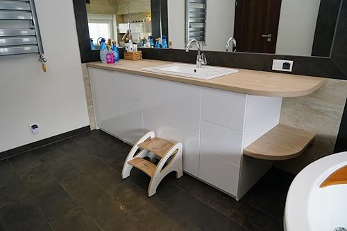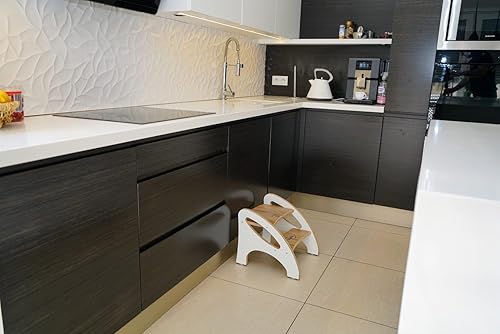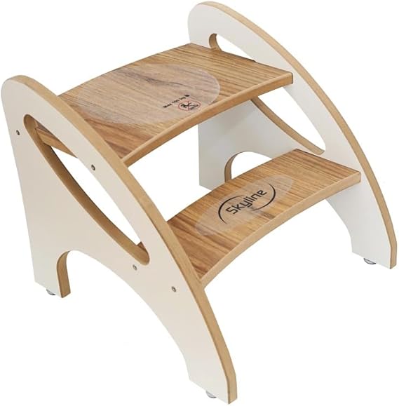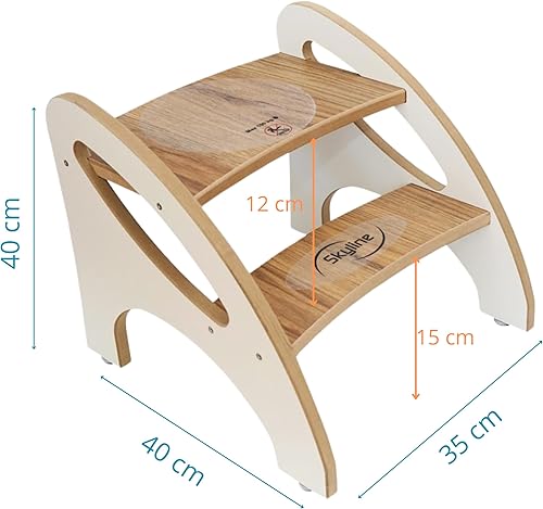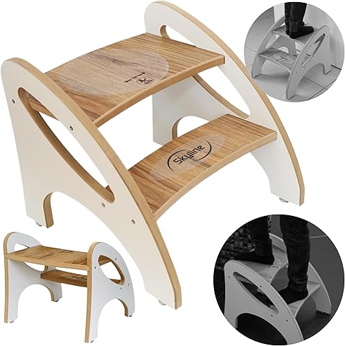 Skyline Marchepied pour enfant avec 2 marches, tapis antidérapant et poignée, multifonction, pour salle de bain, cuisine, chambre d'enfant (imitation bois blanc)