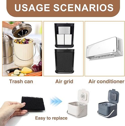 Lot de 8 filtres à charbon actif pour compost de cuisine Joseph & Joseph - Filtres rectangulaires de rechange compatibles avec poubelle à déchets alimentaires Joseph