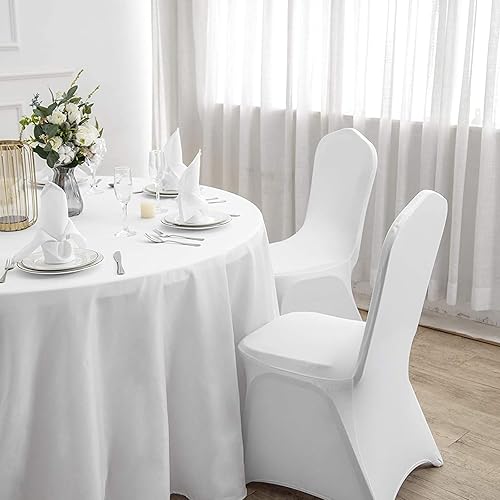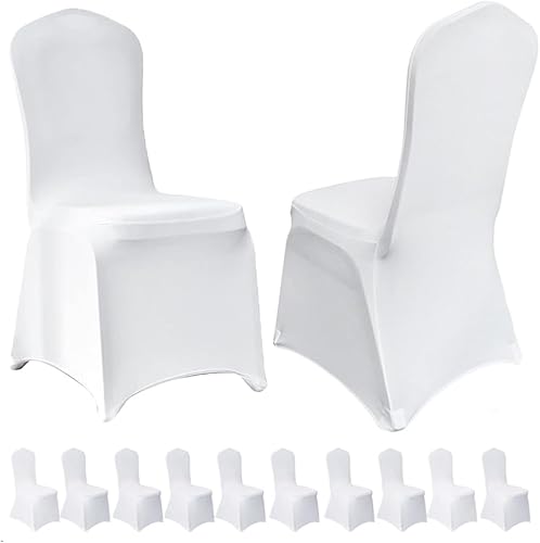 hicoosee Couverture Housses de Chaise Mariage, 10 Pièce Universel Housse de Chaise Extensible pour Chaises sans Bras Polyester et Élasthanne Élastique Soirée Célébration Décoration, Blanc